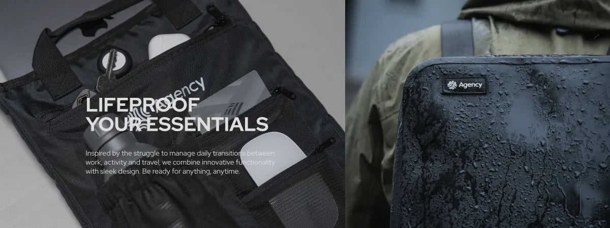 We're Agency - a California brand empowering active people to live lives of their own design. Inspired by the struggle to handle the daily transitions between work, activity and travel during a study abroad in Tokyo, we're redefining how bags can function and feel by combining sleek design with innovative functionality.