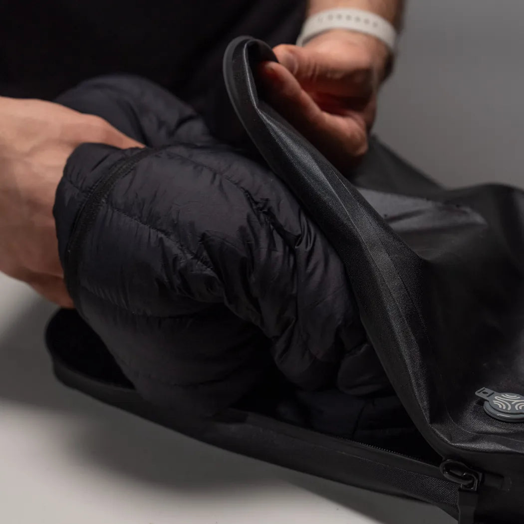 Shrink down bulky outwear to free up space. Just push down or roll to remove excess air - no equipment required. Flexible material allows for deep compression, ensuring a low profile carry experience.